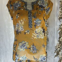 DR2 Womens Floral Mixed Print Cap Sleeve Blouse Mustard Yellow Small boho chic$27Avon Lake, OH