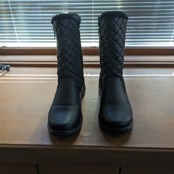 Westies Chunky Heel Block Leather, Fur And Rivet Rhinestone Winter Boots Black Size 8.5$29Rocky River, OH