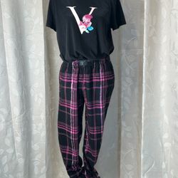 Victoria’s Secret Black Floral Logo Tee & Plaid Jogger Pants Set M Lounge$39Avon Lake, OH