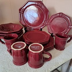 JC Penney Vintage Burgundy 4 Serv. Dinner Set. NEW