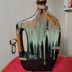 Stoneware Vase w/ Drip Pattern in an Ironwork Frame