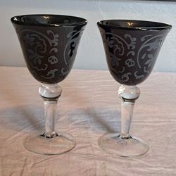 Drinking Glasses Goblets Bundle Black & Clear Etched Glass$12Brookfield Township, OH