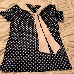 Women's Top Shirt Size 10 Georgee Originals California Blue & White Polka Dots$9Brookfield Township, OH