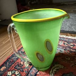 Beautiful 22" Solid Green Glass Charlene Galovich Hand Painted Vase