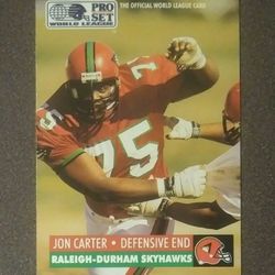 1991 Pro Set World Leauge Jon Carter Raleigh-Durham Skyhawks #25 Football Card Vintage Collectible Sports NFL$5Salem, OH