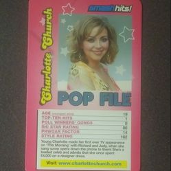 Charlotte Church Smash Hits! Popstars 3 2005 Top Trumps Specials Card Music Picture Pop Rock Vintage Collectible Game$5Salem, OH