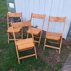 Vintage/Antique Snyder Chair Co Pennsylvania Set Of 4 Oak Wood Folding Chairs