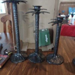 Very Nice Set Of 3 Solid Bronze Palm Tree Candle Holders 19", 17" & 14"$30Warren, OH