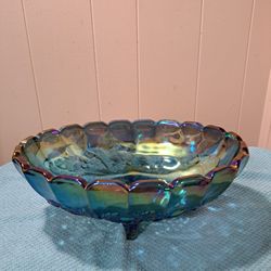 VINTAGE INDIANA CARNIVAL GLASS BLUE IRIDESCENT FRUIT HARVEST VASE BOWL FOOTED$44Sharon, PA