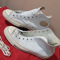 Vintage Converse Chuck Taylor White Leather High Top Sneakers Sz 11.5