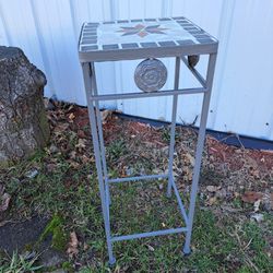 23" Metal Plant Stand With Plaster & Stone Table Top