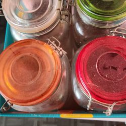 6 Tall Glass Jars With Different Color Lids$15New Lexington, OH