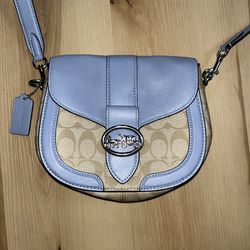 Coach Georgie Light Blue & Beige Pebbled Leather Logo Saddle Crossbody Purse$150Newark, OH