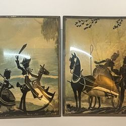Pair of Antique reverse silhouette paintings on convex glass $20Coshocton, OH