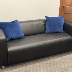 Black Wood And Leather Cushion Sofa$200Upper Arlngtn, OH