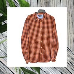 Banana Republic Orange & Navy Checked Long-Sleeve Button Shirt Men Large$18Choctaw, OK