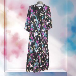 Boutique Black & Multicolor Floral Lined Tiered Maxi Dress Women 0X$35Choctaw, OK