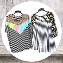 2 Tshirts w Mixed Patterns of Stripes, Leopard, & Camouflage Print Women Size 3X$18Choctaw, OK