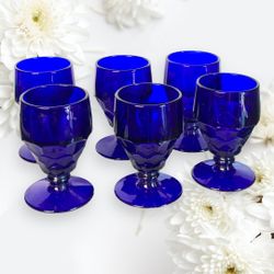 6 Vintage Dazell Georgian Viking Honeycomb Pedestal Cobalt Blue Goblets$70Choctaw, OK