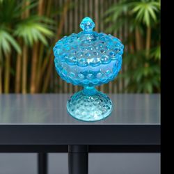 Vintage Fenton Opalescent Blue Hobnail Footed Candy/Compote Glass Dish w Lid$90Choctaw, OK