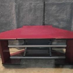 Red Hardwood Corner TV Stand With Glass Shelves$100Oklahoma City, OK