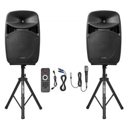 Vevor 15” Powered PA Speakers Pair w/ Stands, Cables & Microphone Bluetooth NEW$350Edmond, OK