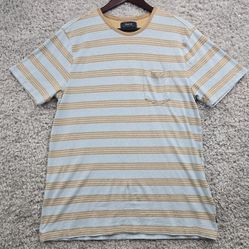 Roark Shirt Mens Large Blue Brown Striped Short Sleeve Pullover Hemp Cotton