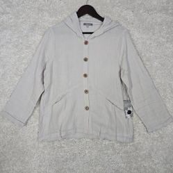 Habitat Womens Top XS Gray Button Front Long Sleeve Hooded Gauzy Pockets Jacket