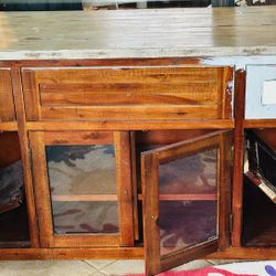 Rustic Vintage Jofran Buffet Cabinet – Solid Wood & Glass Doors – $100Oklahoma City, OK
