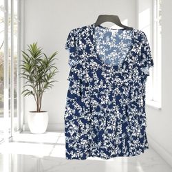 db Dress Barn Established 1962 Navy & White Floral Tiered Ruffles Top Women 2X$17Choctaw, OK