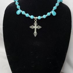 Turquoise & Silver Cross w/Crystals Necklace$80Duncan, OK