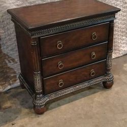Powell Burled Wood Silver Highlights Oversized Nightstand 3 Drawer Ornate Ring Pulls 30Ă—30$500Oklahoma City, OK