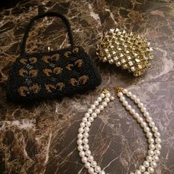 Fancy Little Black Bag With Jewels And Pearl Necklace And Gold Bracelet $50Oklahoma City, OK