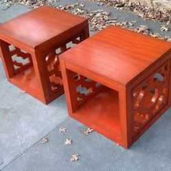 Pair 18 in Cube Chippendale Chinoiserie Pierced Vintage Red End Tables Heavy$700Oklahoma City, OK