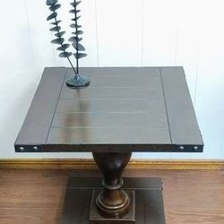 Metal Accented Stout Rustic 2015 Espresso Pedestal End Table$120Oklahoma City, OK