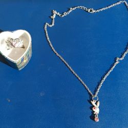 Womens Bunny necklace & heart ring size 9 LOT$15Oklahoma City, OK