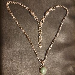 Classy BRIGHTON Braided Rope Silver Chain w Green ish Turquoise Stone Pendant $48Oklahoma City, OK