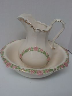 VINTAGE 1983 PAULINE TINKER WASH BASIN ***PINK ROSES, GREEN LEAVES AND GOLD ACCENTS***$35Tulsa, OK