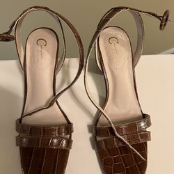 Brown leather kitten heel sandals with crocodile print Size 8$20Broken Arrow, OK