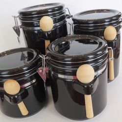 Set Of 4 Canisters Black With Wood Spoon $35Vancouver, WA