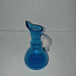 Vintage Hand Blown Glass Blue Turquoise Kitchen Oil Cruet With Clear Handle$15Cornelius, OR