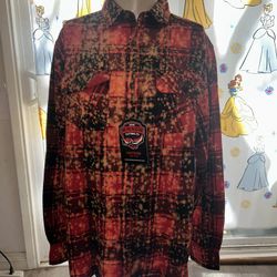 Angry Minnow Flannel Shirt Men's Merry Christmas Reindeer Orange Bleached Sz L$69Portland, OR