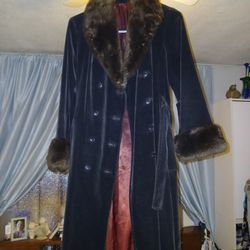 DRIZZLE VINTAGE BROWN VELVET GENUINE FUR TRIM BELTED TRENCH COAT $20Portland, OR