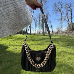 Aldo Black Faux Leather Shoulder Bag With Gold Chain and Lion Head detail$50Woodburn, OR