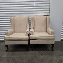 Pair of Henredon Carved Upholstered Wingback Armchairs Set$170Vancouver, WA