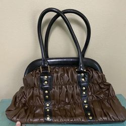 CACHE Black Brown Gathered Hobo Bag Gold Studded Magnetic Clasp Tote Purse Boho$15Portland, OR