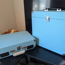 Teal Crosley Record Player w/ Vinyl Storage Box And 15 Vinyl Records$100Glenwood, OR