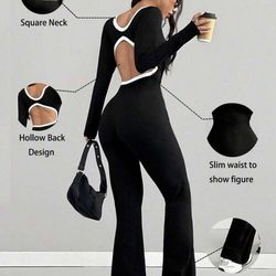 Black Flared Jumpsuit – Square Neck, Open Back, Slim Fit (New)$25Portland, OR