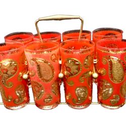 vintage 8 Culver Red & Gold Paisley high-balls With Holder$175Portland, OR