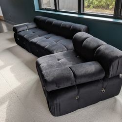 Modern Style Black Leather Sectional Couch And Ottoman $700Vancouver, WA